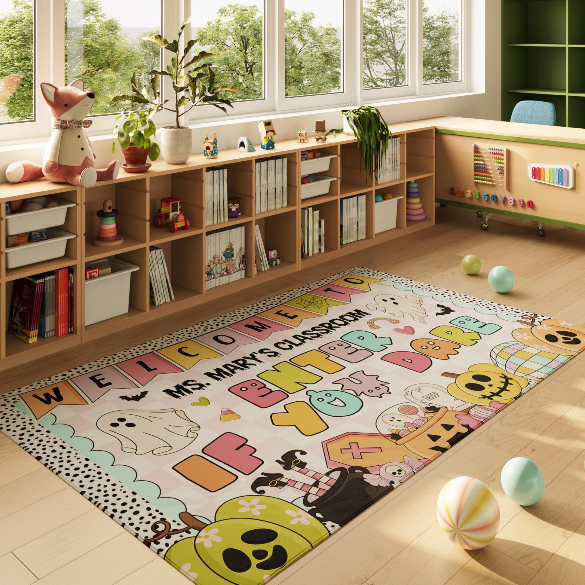 Welcome the spirit of the season into your classroom with this 'Welcome to Classroom' Halloween rug — perfect for teachers who love spooky touches and festive fall vibes.