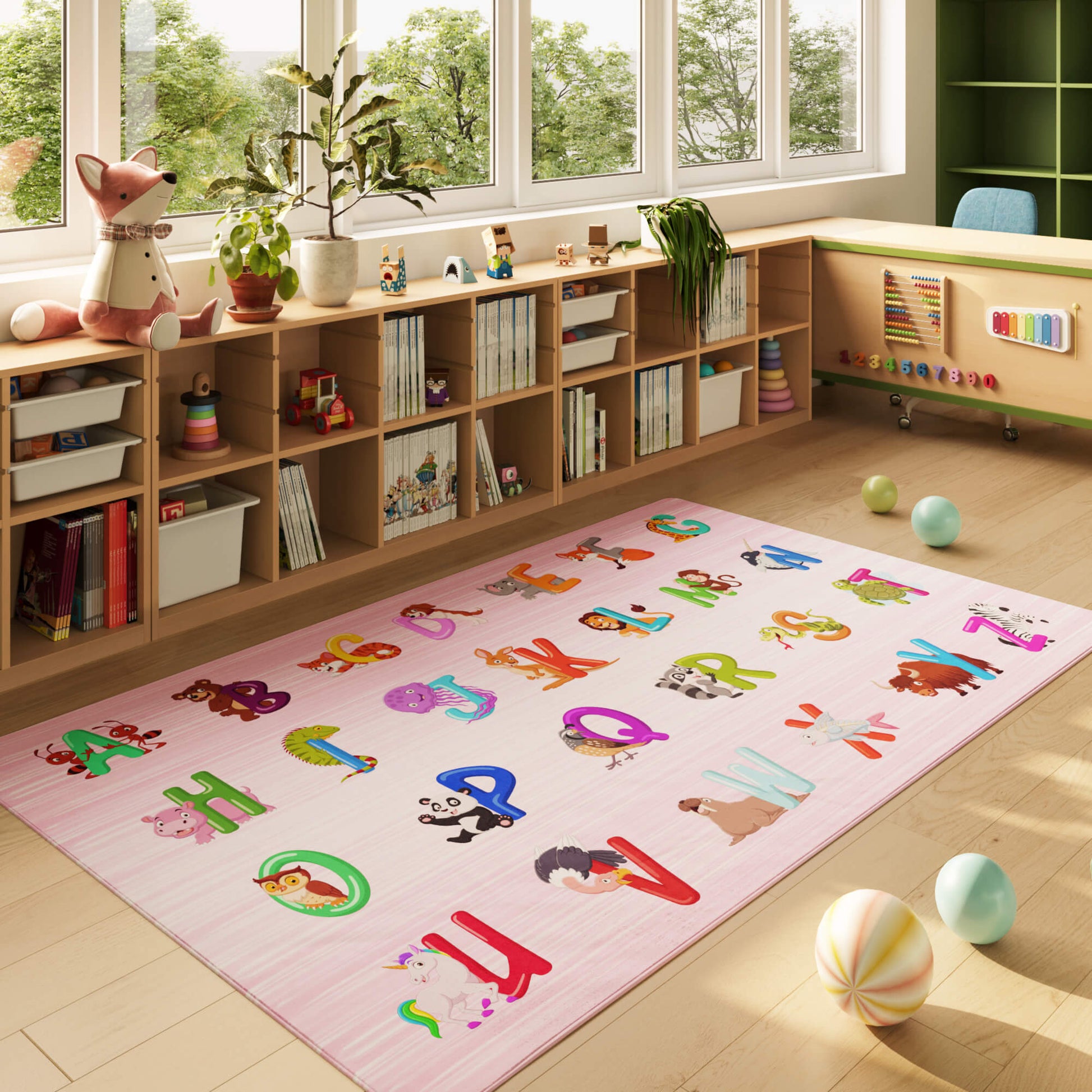 Pink ABC Animals Alphabet Educational Classroom Rug